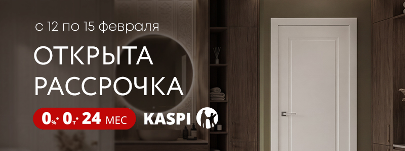 Рассрочка на 24 месяца без предоплаты и переплат! На весь ассортимент от белорусского производителя Belwooddoors действует выгодная рассрочка от Kaspi Bank с 12 по 15 февраля 2026 года включительно.