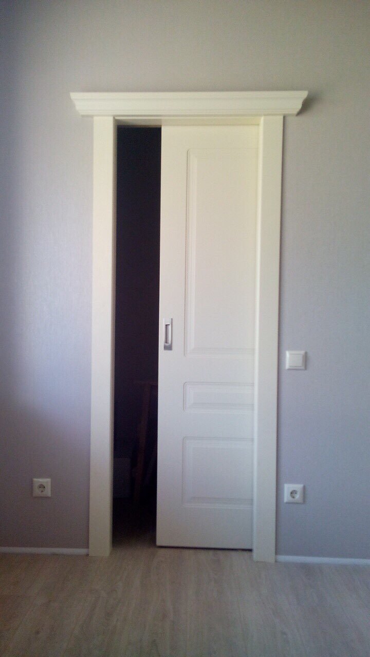 Светлые межкомнатные двери в интерьере квартиры. Раздвижная межкомнатная дверь - Роялти жемчуг.