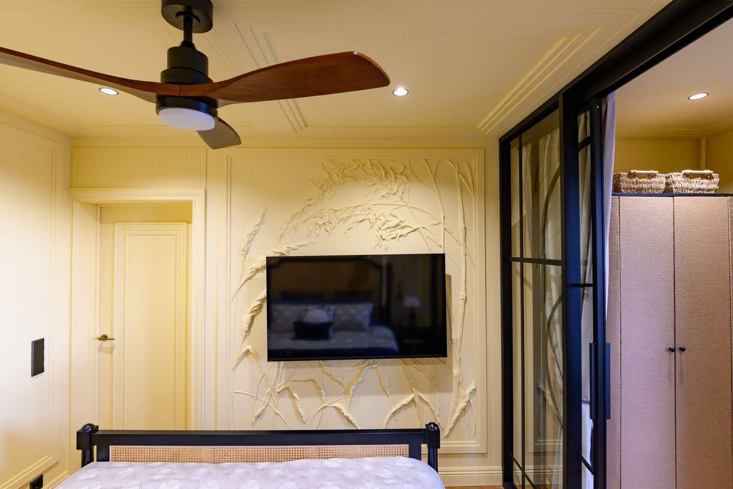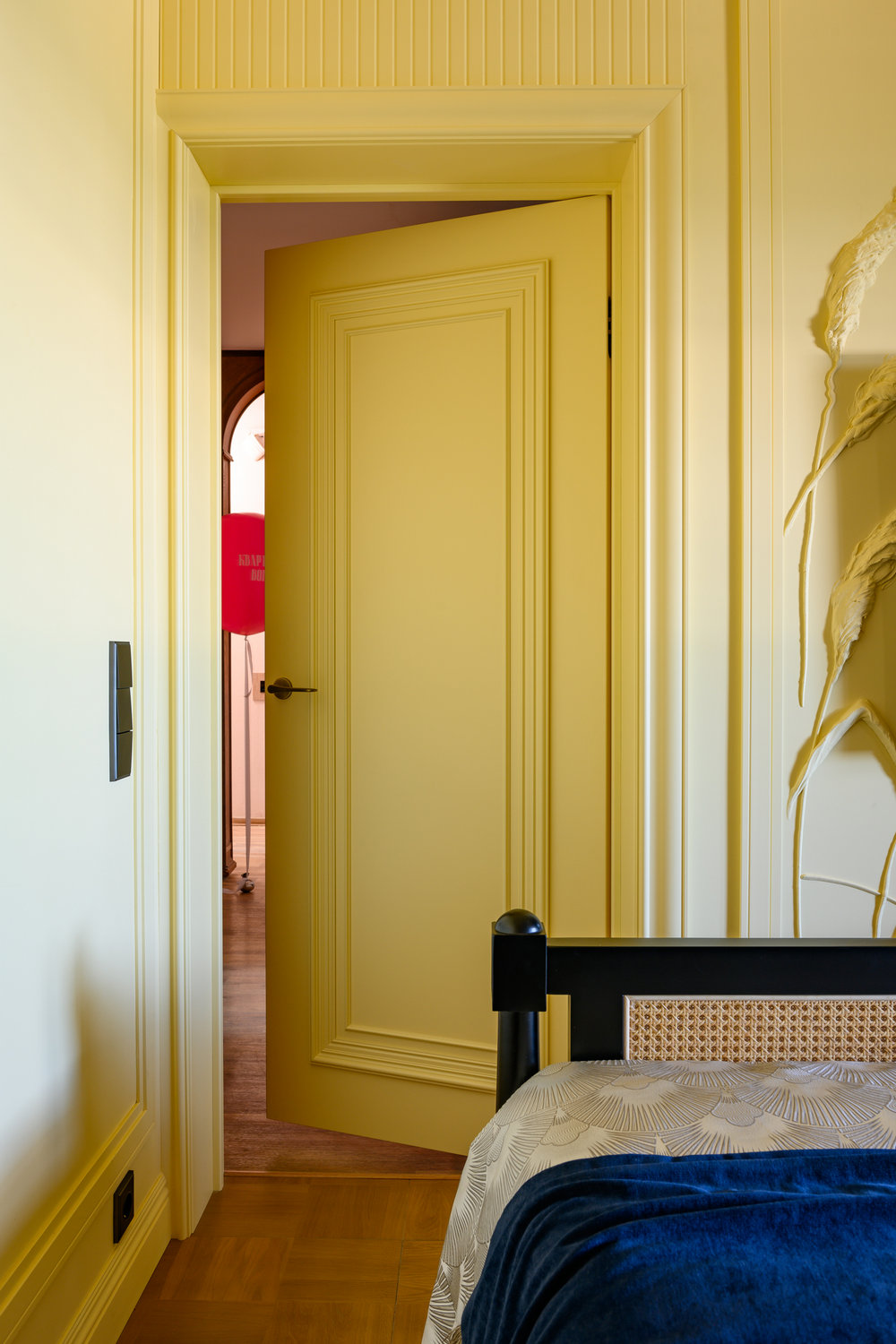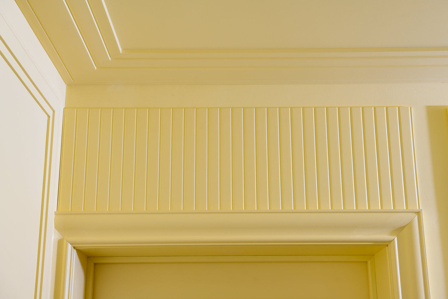 Дополняет композицию изящная рифлёная фрамуга над дверью — архитектурный акцент, подчёркивающий утончённость интерьера.