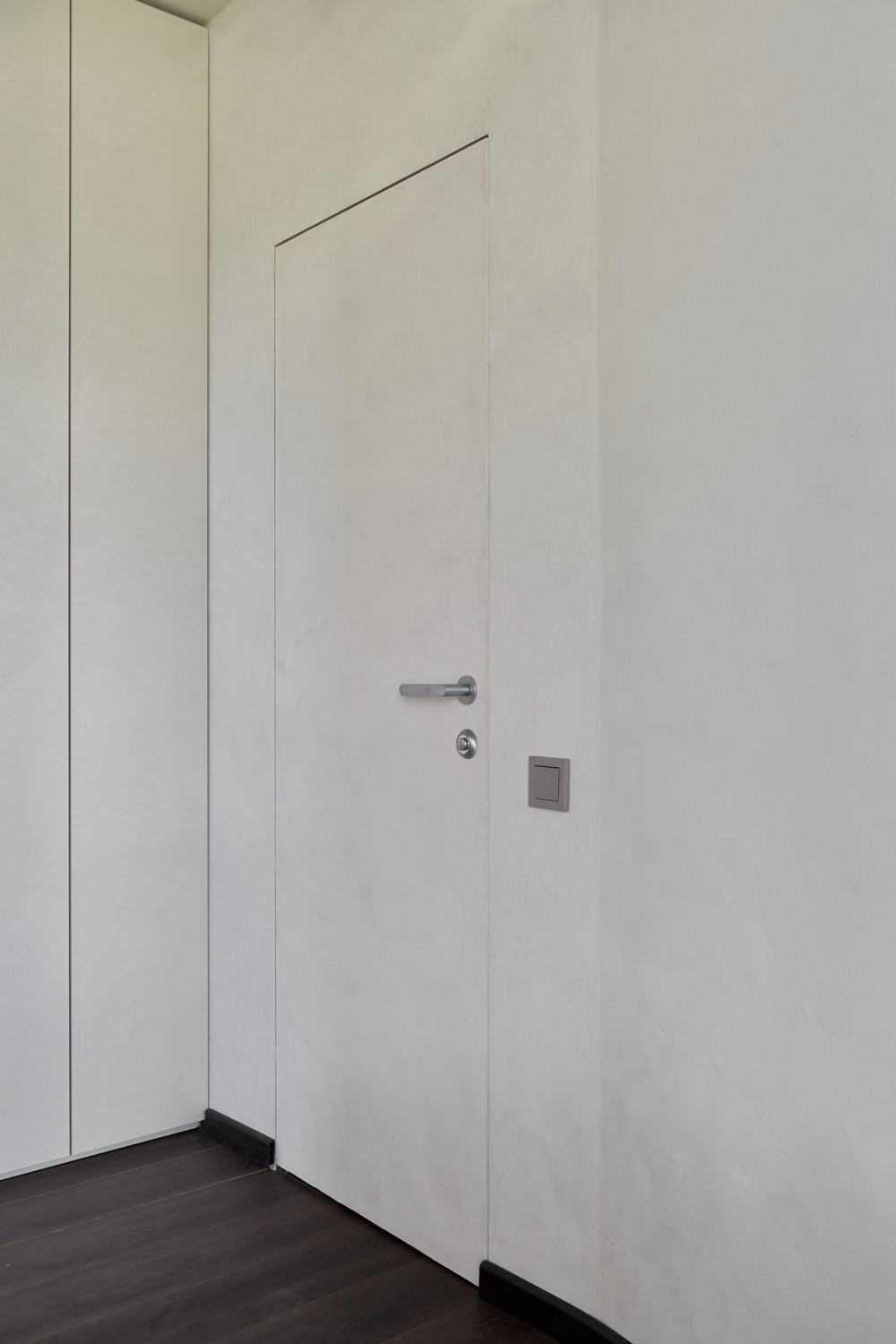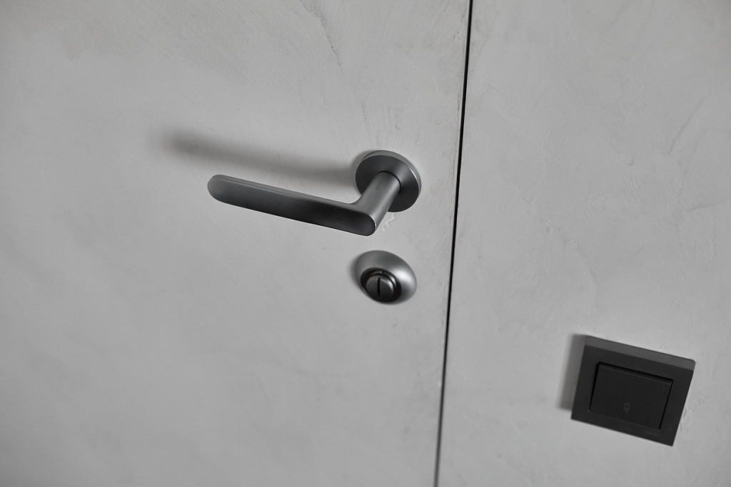 Такой же короб смонтировали напротив – здесь вход в санузел. Каждое дверное полотно усилено панелью МДФ толщиной 6 миллиметров и заранее загрунтовано на производстве.