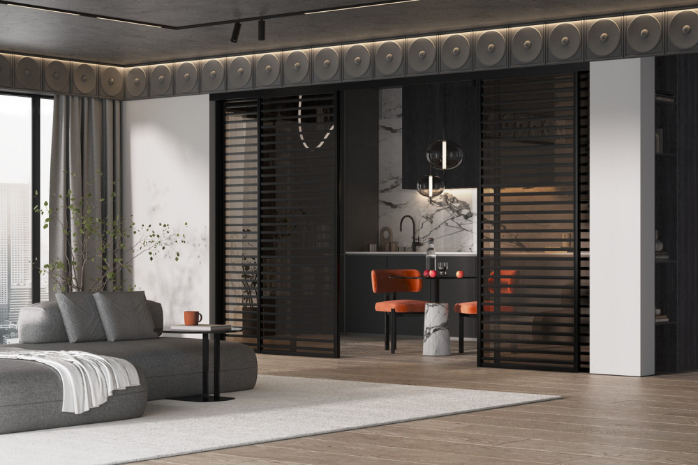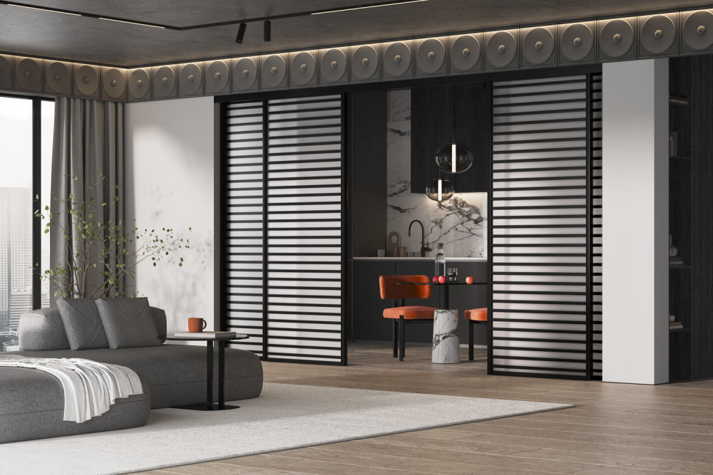 закаленное безопасное стекло Мателюкс белого, серого или бронзового цвета с матовым эффектом сохраняет приватность.