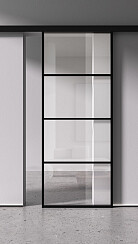 Современный дизайн: стильные двери из алюминиевого профиля — оригинальный способ эффективно разделить пространство в доме или офисе. Центральным элементом дизайна является стеклянная вставка на весь размер полотна, которая зрительно увеличивает площадь комнаты, создавая комфортную, уютную атмосферу. Модель Спейс АП 3 подходит для раздвижной системы открывания (двери-купе).