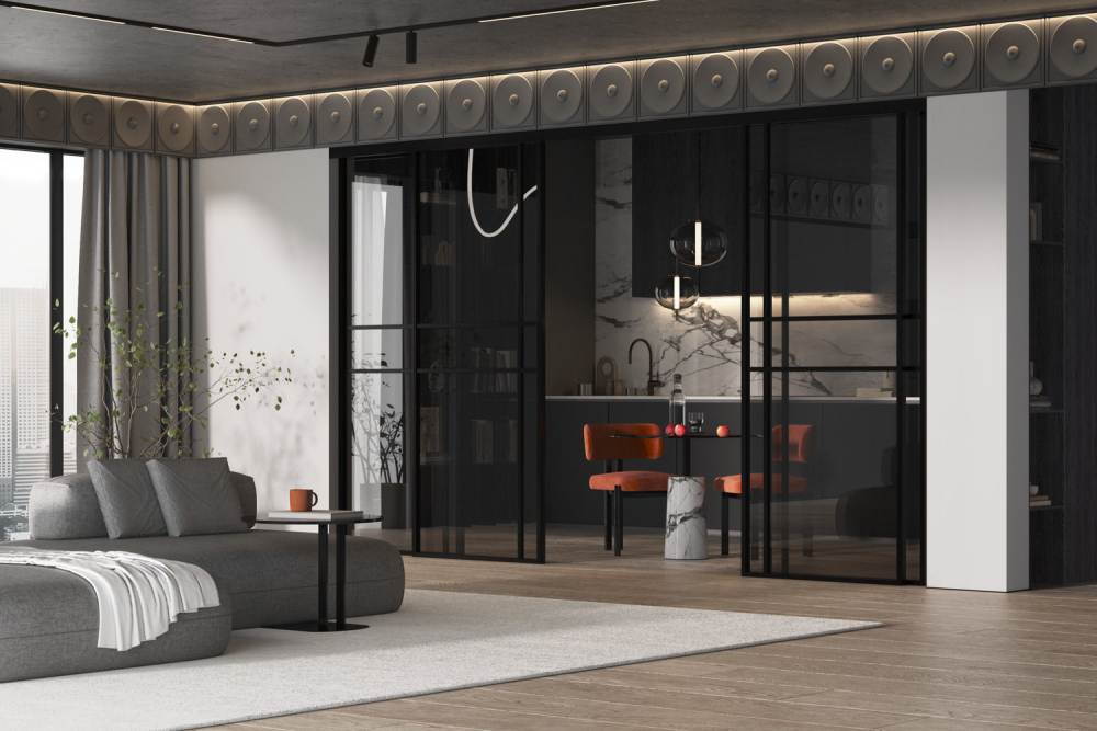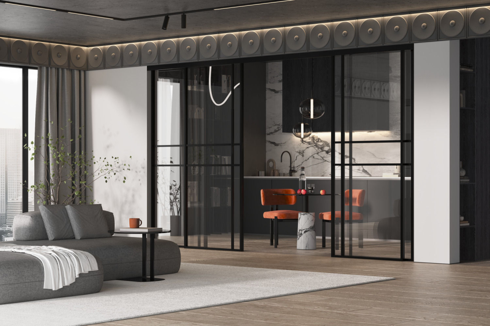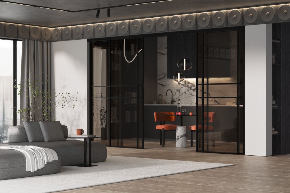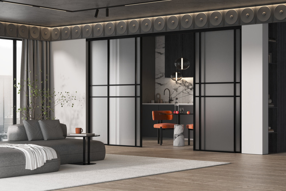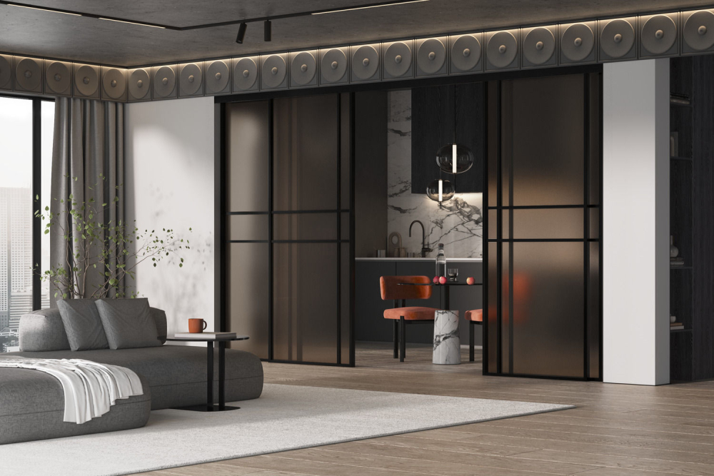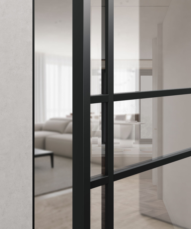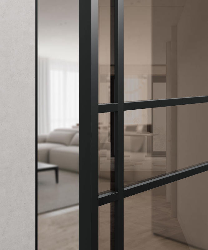 Гарантия на межкомнатные стеклянные двери в алюминиевом профиле из коллекции «Спейс» — 2 года.
