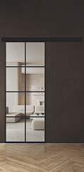 Современный дизайн: стильные двери из алюминиевого профиля — оригинальный способ эффективно разделить пространство в доме или офисе. Центральным элементом дизайна является стеклянная вставка на весь размер полотна, которая зрительно увеличивает площадь комнаты, создавая комфортную, уютную атмосферу. Модель Спейс АП 5 подходит для раздвижной системы открывания (двери-купе).