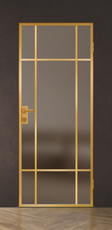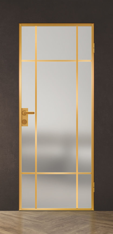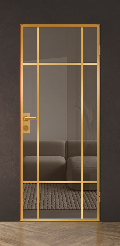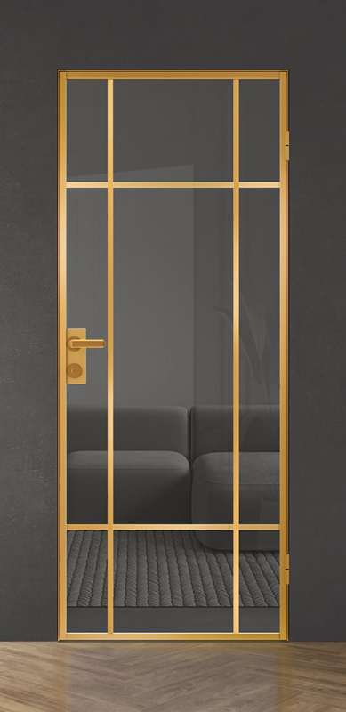Стойки дверной коробки и алюминиевые кромки могут быть окрашены в белый, черный или золотой цвет.