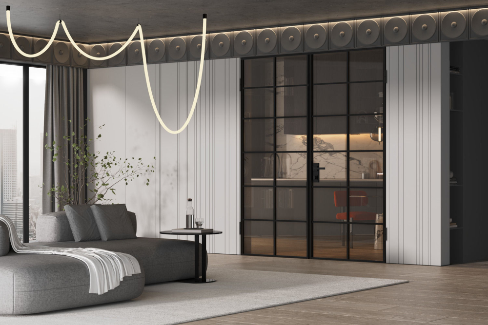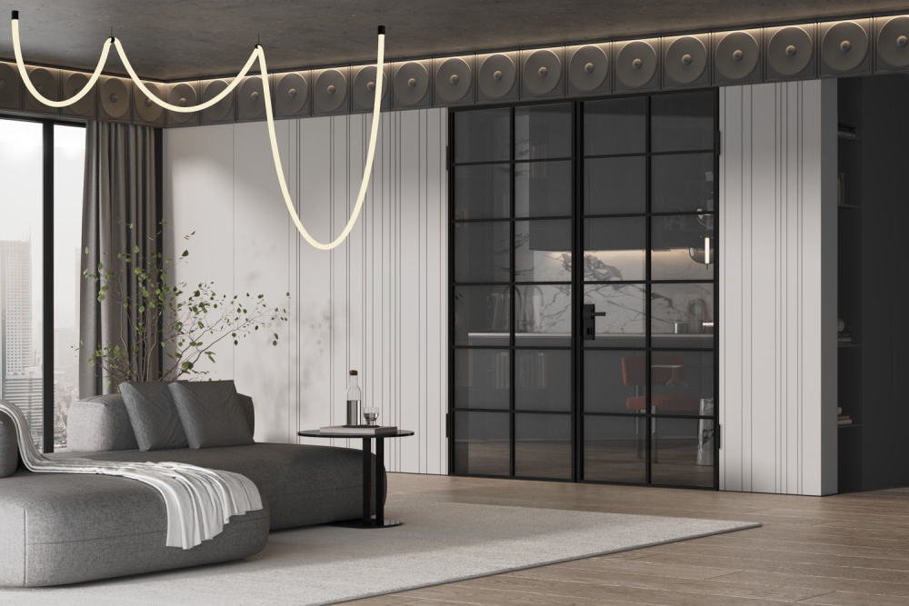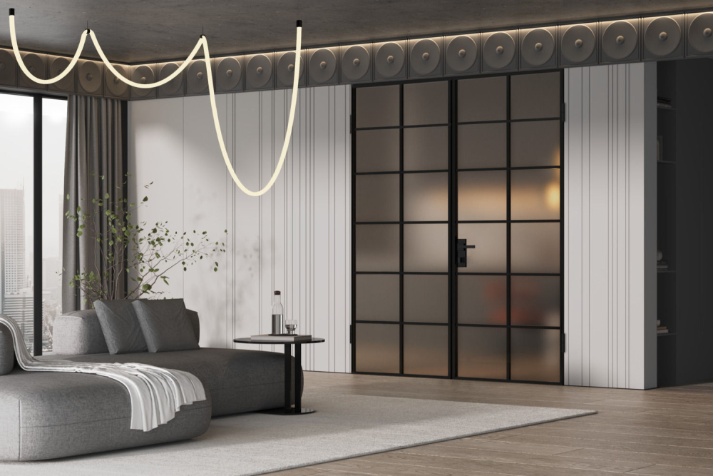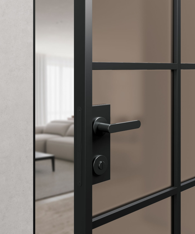 закаленное безопасное стекло Мателюкс белого, серого или бронзового цвета с матовым эффектом сохраняет приватность.