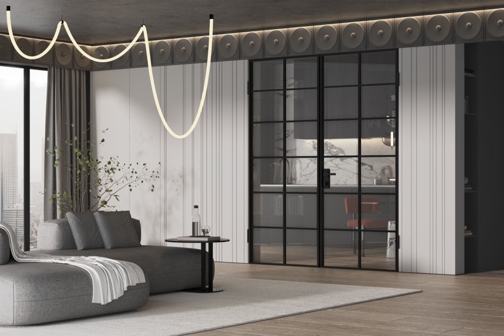 Современный дизайн: алюминиево-стеклянные межкомнатные двери — оригинальный способ эффективно разделить пространство в доме или офисе. Центральным элементом дизайна является стеклянная вставка на весь размер полотна, которая зрительно увеличивает площадь комнаты, создавая комфортную, уютную атмосферу. Стильная модель Спейс АПР 9 подходит для распашной системы открывания.