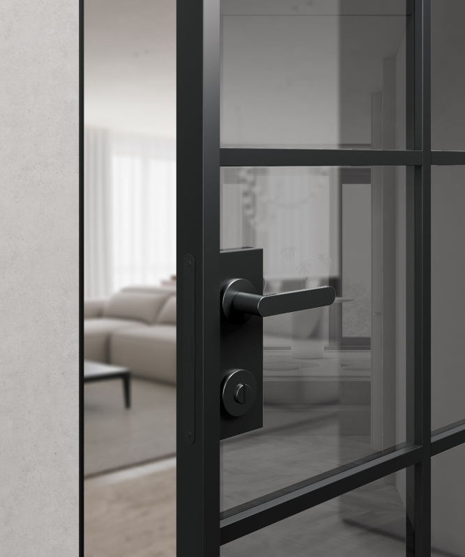 Чтобы превратить стандартную распашную дверь Belwooddoors в дверь-невидимку, мы разработали уникальную коробку с усиленной конструкцией. Она выполнена из анодированного алюминия, что обеспечивает надежную защиту от механических повреждений и коррозии. Коробка скрытого монтажа в универсальном черном цвете аккуратно дополнит темный интерьер или станет ярким акцентом в светлой комнате в сочетании с черной фурнитурой. Подходит для дверей как прямого (на себя), так и обратного (от себя) открывания.