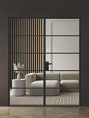 Современный дизайн: стильные двери из алюминиевого профиля — оригинальный способ эффективно разделить пространство в доме или офисе. Центральным элементом дизайна является стеклянная вставка на весь размер полотна, которая зрительно увеличивает площадь комнаты, создавая комфортную, уютную атмосферу. Модель Спейс АПР 4 подходит для распашной системы открывания.