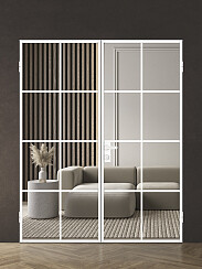 закаленное безопасное стекло Мателюкс белого цвета с матовым эффектом сохраняет приватность.