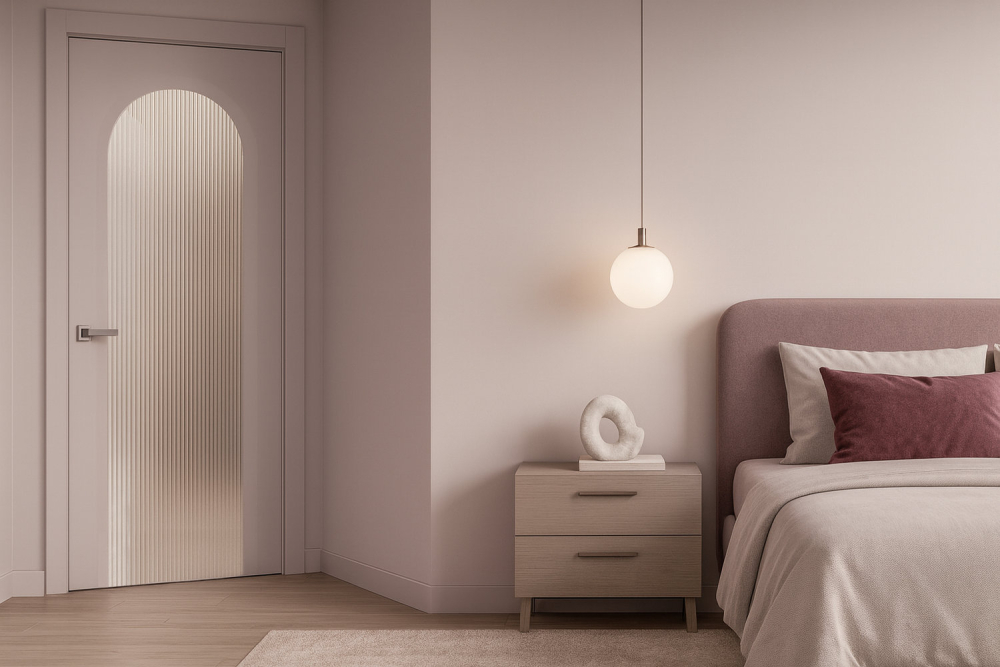 Стекло: триплекс прозрачное Волна или закаленное безопасное стекло Мателюкс белого цвета с матовым эффектом сохраняет приватность в комнате, слегка наполняя ее светом.