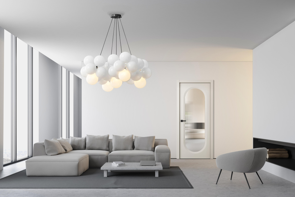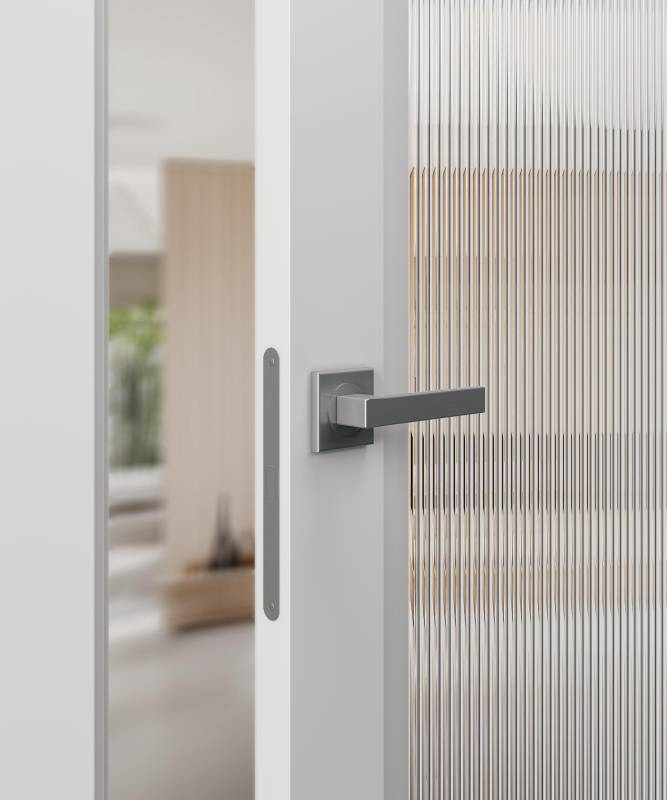 Стекло: узорчатое Волна или закаленное безопасное стекло Мателюкс белого цвета с матовым эффектом сохраняет приватность в комнате, слегка наполняя ее светом.