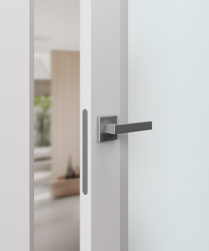 закаленное безопасное стекло Мателюкс белого цвета с матовым эффектом сохраняет приватность в комнате, слегка наполняя ее светом;