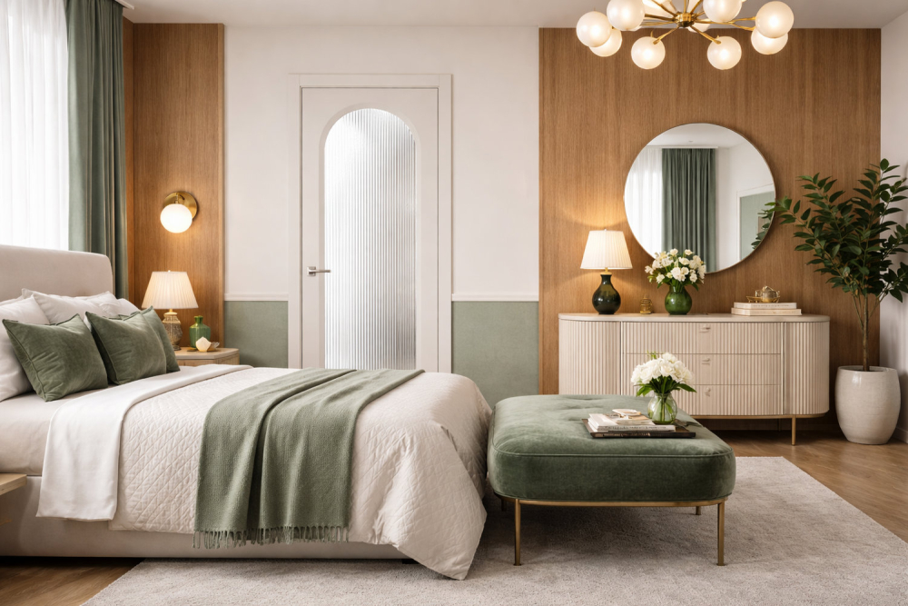 закаленное безопасное стекло Мателюкс белого цвета с матовым эффектом сохраняет приватность в комнате, слегка наполняя ее светом;