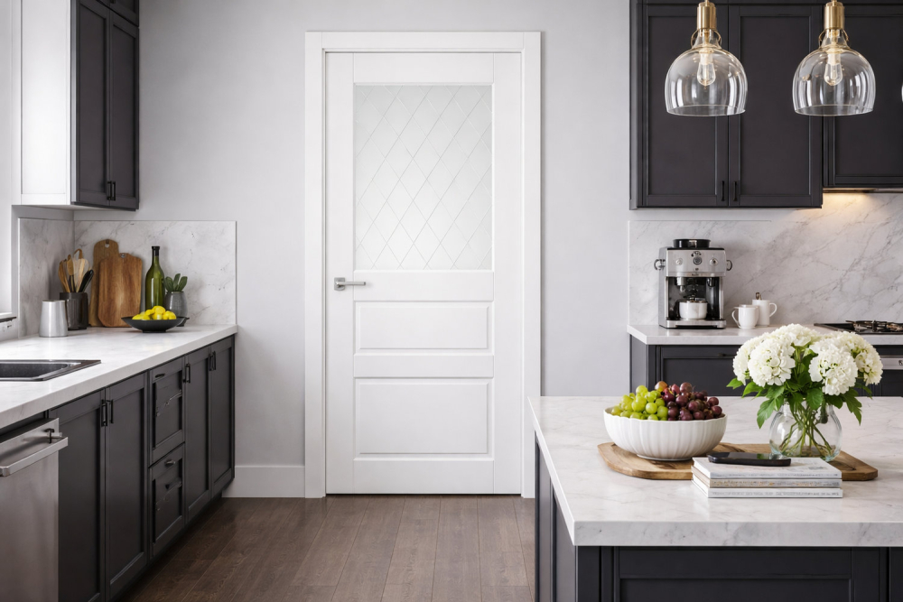 Стекло: витражное стекло Мателюкс белого цвета с матовым эффектом сохраняет приватность в комнате, пропуская при этом свет.