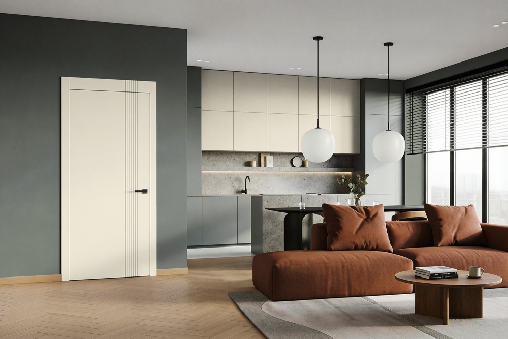 Современный дизайн: универсальная межкомнатная дверь с вертикальной фрезеровкой Прая в стиле модерн — оптимальный баланс цены и качества от Belwooddoors. Эта глухая модель гармонично дополнит любой интерьер, став его акцентом.