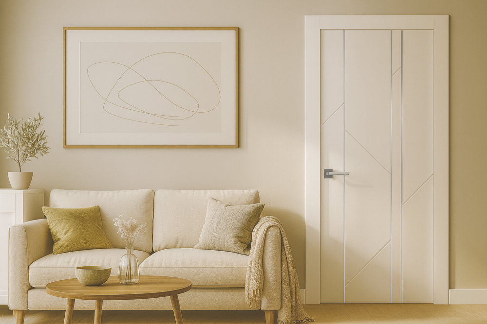 Современный дизайн: эффектная и очень выразительная светло-серая межкомнатная дверь Флекс 1 отличается вертикальными молдингами вместе со строгой V-образной фрезеровкой. Нетривиальное оформление полотна соответствует последним трендам дверной индустрии, идеально сочетаясь с любым интерьером.