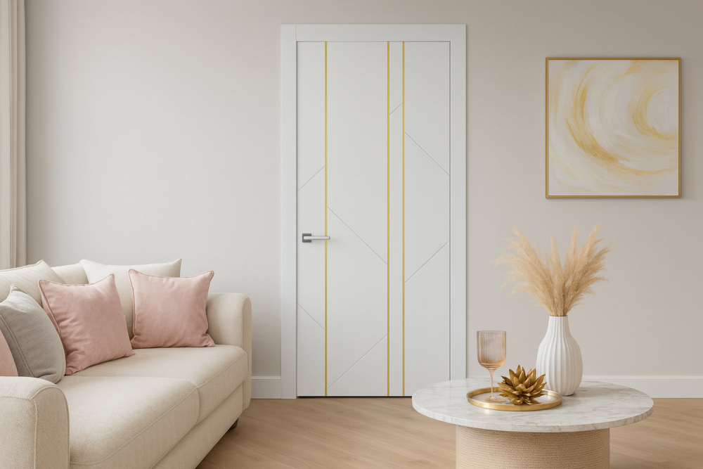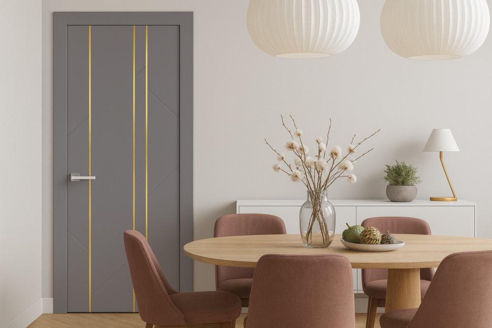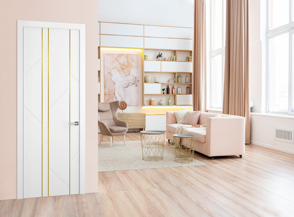 Межкомнатная дверь Флекс 1 Молдинг Золото Эмаль пепельный глухая