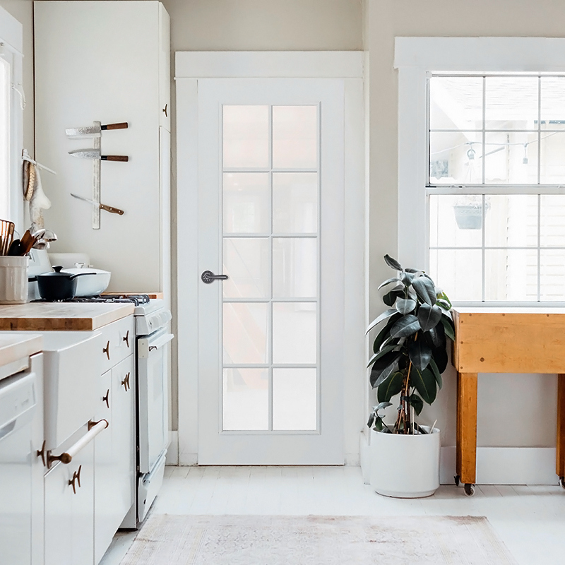 Стекло: закаленное безопасное стекло Мателюкс белого цвета с матовым эффектом с обеих сторон сохраняет приватность в комнате, слегка наполняя ее светом.
