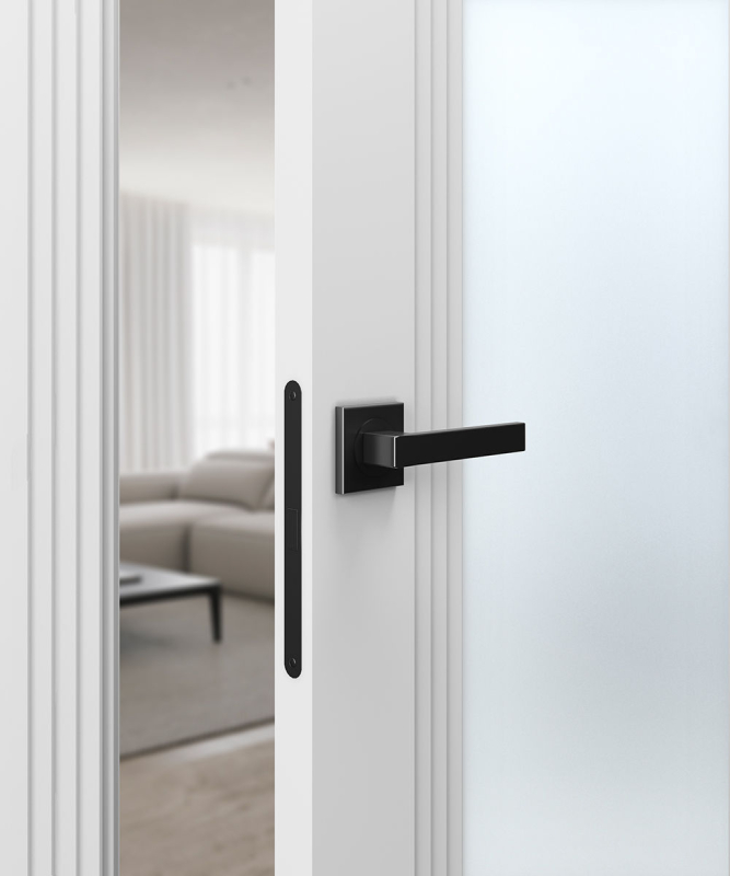 Стекло: закаленное безопасное стекло Мателюкс белого цвета с матовым эффектом сохраняет приватность в комнате, слегка наполняя ее светом.