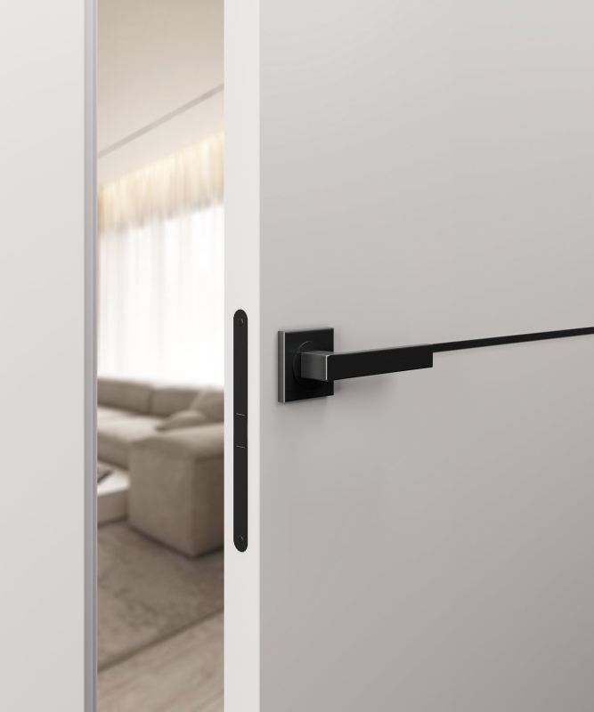 Это наличник, который образует единую плоскость со стеной и дверью. Такое решение создаёт стильный минималистичный дизайн. В то же время обеспечивается экономия пространства, так как с наружной стороны дверь можно открыть полностью. Наружный наличник-компланар представляет собой накладную планку Г-образной формы, где короткая сторона соприкасается с торцом дверного полотна, а длинная прилегает к стене. С внутренней стороны дверей можно использовать телескопические наличники.