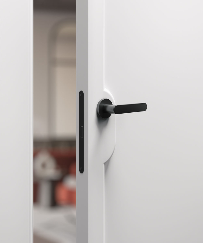 Это наличник, который образует единую плоскость со стеной и дверью. Такое решение создаёт стильный минималистичный дизайн. В то же время обеспечивается экономия пространства, так как с наружной стороны дверь можно открыть полностью. Наружный наличник-компланар представляет собой накладную планку Г-образной формы, где короткая сторона соприкасается с торцом дверного полотна, а длинная прилегает к стене. С внутренней стороны дверей можно использовать телескопические наличники.