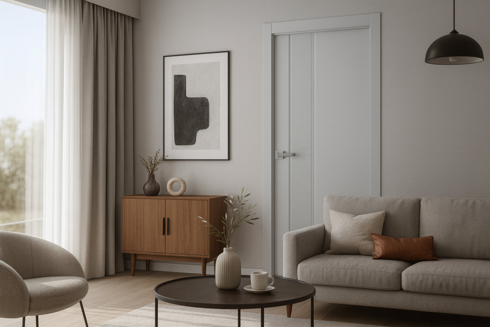 Современный дизайн: комбинация гладкой поверхности и вертикальной вставки из натурального брашированного шпона дуба на полотне станет акцентом в стиле Прованс, добавив помещению ноток природы. Межкомнатная дверь сочетает в себе лучшие материалы, современные тенденции и выпадающий порог, что позволяет модели Твинвуд 1 освежить интерьер дома или квартиры.