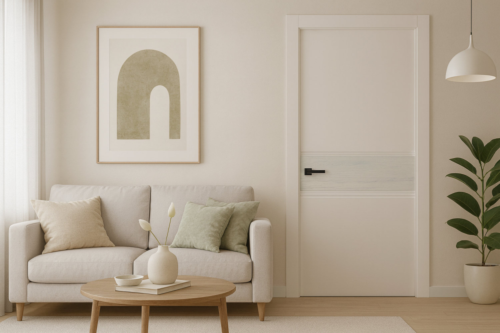 Современный дизайн: комбинация гладкой поверхности и горизонтальной вставки из натурального брашированного шпона дуба на полотне станет акцентом в стиле Прованс, добавив помещению ноток природы. Межкомнатная дверь сочетает в себе лучшие материалы, современные тенденции и выпадающий порог, что позволяет модели Твинвуд 2 освежить интерьер дома или квартиры.