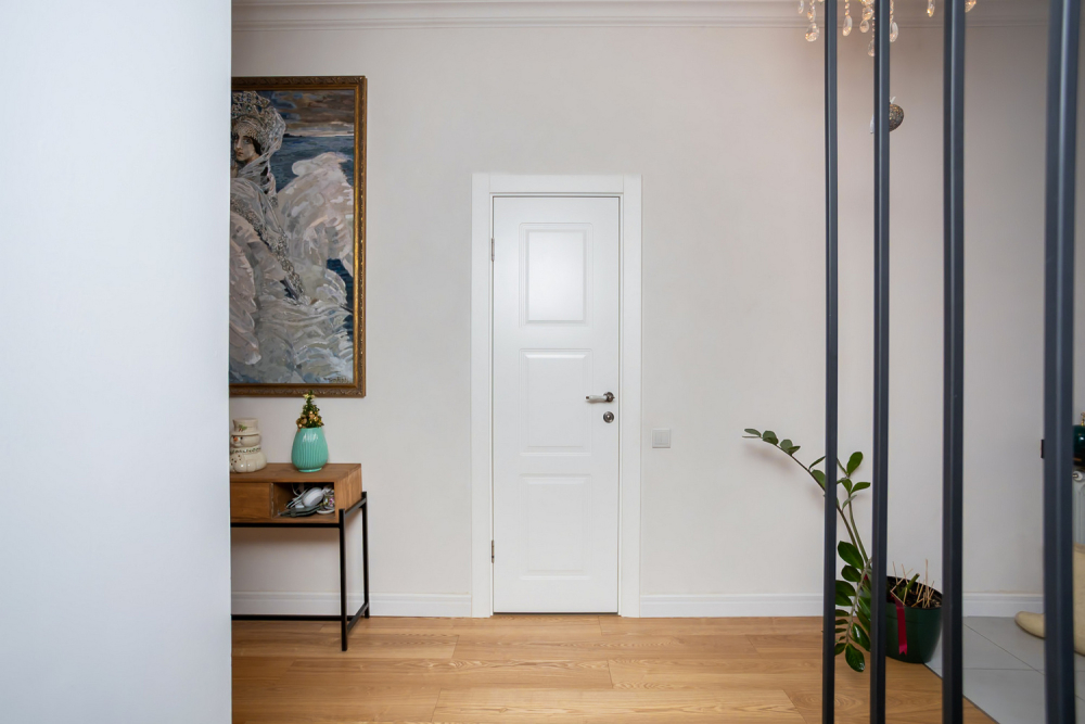 Это наличник, который образует единую плоскость со стеной и дверью. Такое решение создаёт стильный минималистичный дизайн. В то же время обеспечивается экономия пространства, так как с наружной стороны дверь можно открыть полностью. Наружный наличник-компланар представляет собой накладную планку Г-образной формы, где короткая сторона соприкасается с торцом дверного полотна, а длинная прилегает к стене. С внутренней стороны дверей можно использовать телескопические наличники.