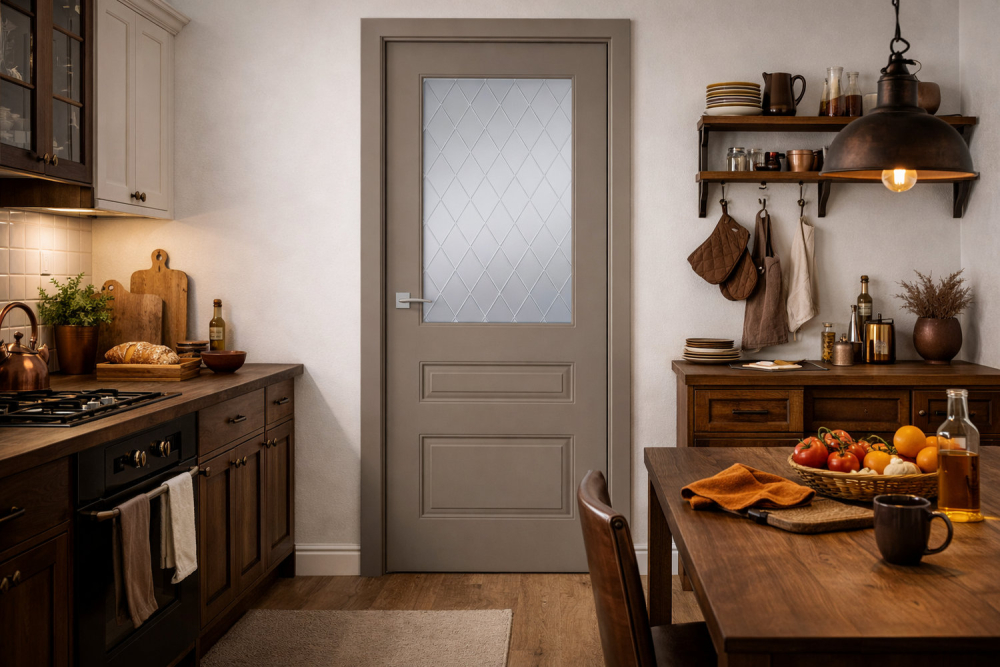 Конструкция двери: щитовая фрезерованная. Толщина полотна составляет 39 мм.