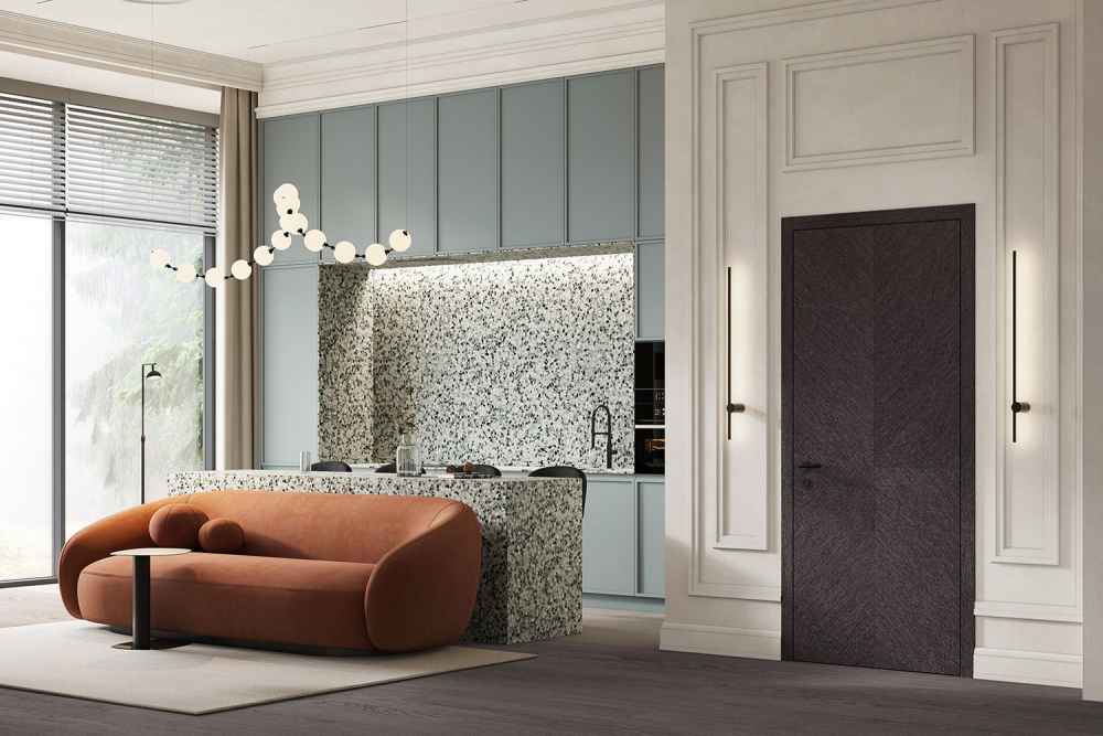 Наполнение: Smart Core — это инновационный, запатентованный заводом Belwooddoors экологически чистый материал из древесных волокон, который отвечает за звукоизоляцию и сохранение тепла внутри комнаты.