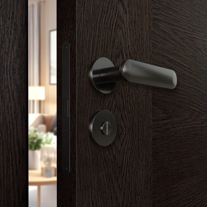 Это наличник, который образует единую плоскость со стеной и дверью. Такое решение создаёт стильный минималистичный дизайн. В то же время обеспечивается экономия пространства, так как с наружной стороны дверь можно открыть полностью. Наружный наличник-компланар представляет собой накладную планку Г-образной формы, где короткая сторона соприкасается с торцом дверного полотна, а длинная прилегает к стене. С внутренней стороны дверей можно использовать телескопические наличники.